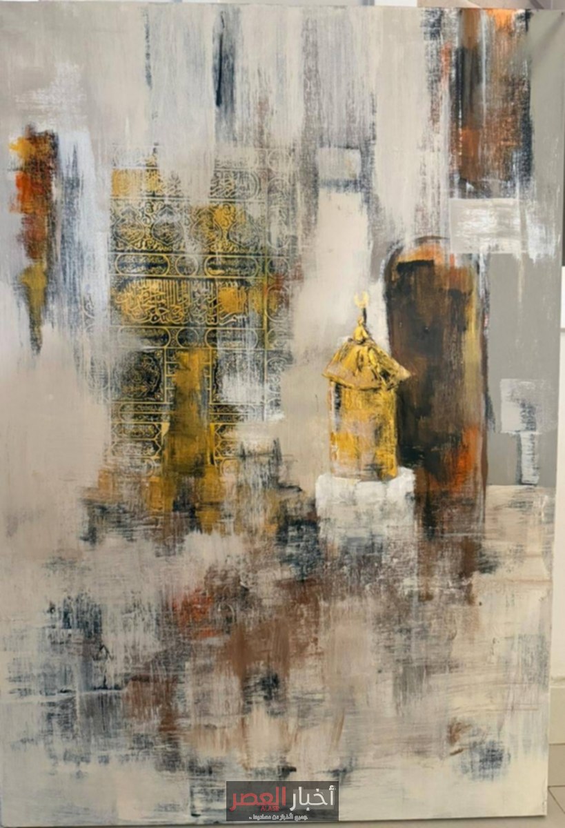 الفنان التشكيلي السعودي عبدالله منير القثامي يقدم لوحة تجريدية تعبيرية مستوحاة من الحرم المكي، حيث يمزج بين الألوان الذهبية والرمادية…