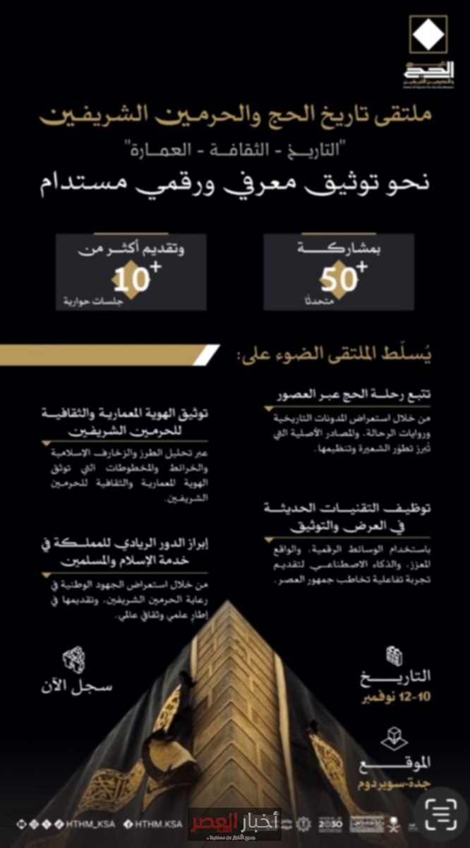 جدة تستضيف ملتقى تاريخ الحج والحرمين الشريفين برعاية خادم الحرمين