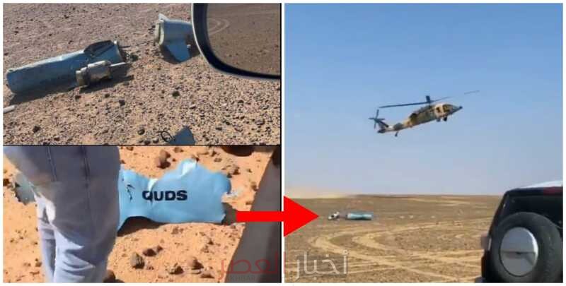 انتشر مقطع فيديو يظهر طائرة هيلوكبتر تابعة للجيش الاردني اثناء معاينتها لموقع سقوط الصاروخ القادم من اليمن.