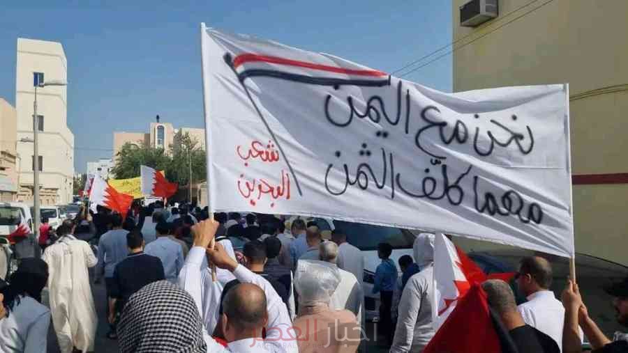 حيث تأتي هذه المظاهرات الشعبية في البحرين رداً على اعلان مشاركة الحكومة البحرينية في عمليات القصف الجوي التي قامت بها القوات الامريكية والبريطانية في اليمن.
