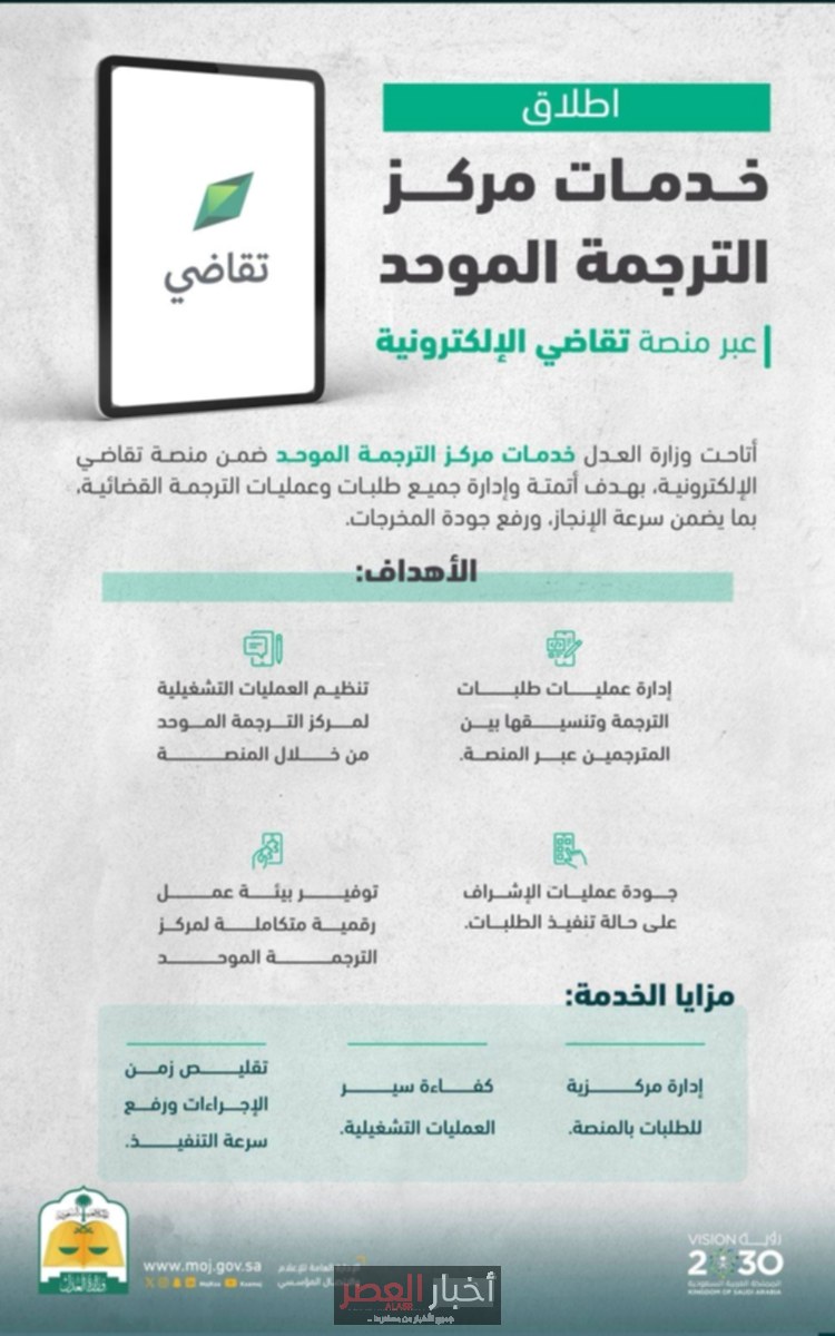 وزارة العدل تطلق خدمات الترجمة الموحدة عبر منصة تقاضي