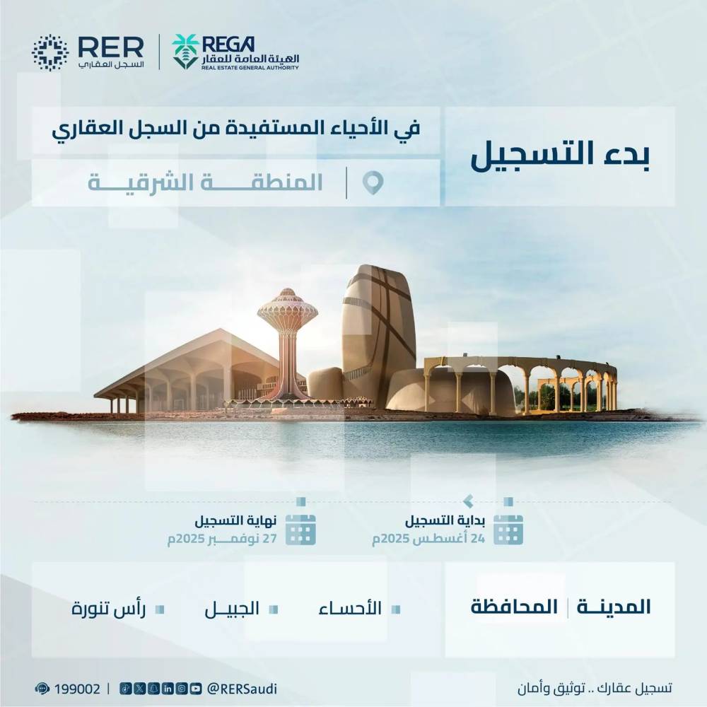 ودعت الهيئة العامة للعقار ملاك العقارات في هذه المناطق إلى تسجيل عقاراتهم قبل نهاية 27 نوفمبر 2025، مؤكدة على أهمية التسجيل للاستفادة من خدمات السجل العقاري وتسهيل التصرفات العقارية، بالإضافة إلى تفادي العقوبات والغرامات التي ينص عليها نظام التسجيل العيني للعقار. ويمكن للملاك التحقق من شمول عقاراتهم في المناطق المعلنة عبر منصة السجل العقاري والتواصل مع مركز خدمة العملاء للاستفسارات.