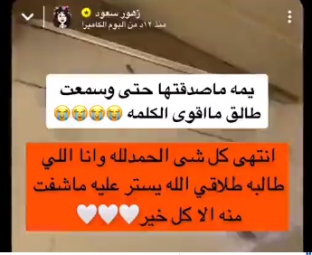 ونشرت مشهورة سناب شات زهور سعود طلاقها مقطع فيديو عبر حسابها على مواقع التواصل الاجتماعي.