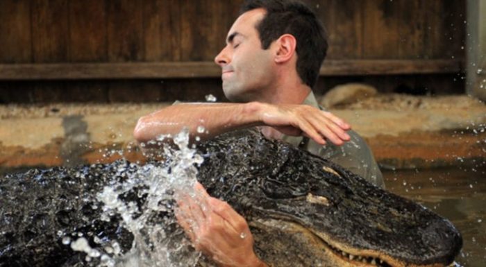اتخذ رجل اربعيني قرارا مصيريا لحظة مواجهته لتمساح في احدى البحيرات بمدينة ميكا الإيطالية.