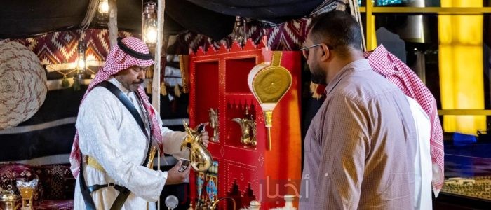 كما يتناغم مع تحضير القهوة “نغمات موسيقية تعرف بالتثليثة أو التربيعة أو التخميسة، وانتهاء بصب القهوة في الفناجين، والتي تتم وفق إيقاع يحكي عمق الثقافة السعودية وألوانها”.