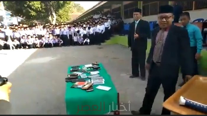 وييدو أن جلب الهواتف إلى المدرسة في إندونيسيا عملية محظورة إداريا وهو ما دعا المسؤولين لتحطيمها بهذا الشكل.