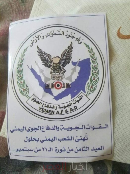 وحملت المنشورات التي كان عليها شعار القوات المسلحة الجوية عبارات عديدة منها هذه العبارة الخطيرة: “القوات الجوية والدفاع الجوي تهنئ الشعب اليمني بحلول العيد الثامن من ثورة ال ٢١ من سبتمبر”