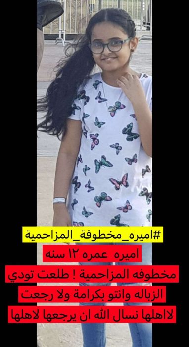 وناشد المغردون بالبحث عن الطفلة التي تبلغ من العمر 12 عاما، ودعوا أن ترجع بالسلامة لذويها.