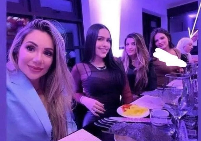 وفي الصورة ظهرت ماجي صادق وهي جالسة على طاولة العشاء بجانبهن دون أن تشاركهن بالتقاط الصورة الجماعية، كما لم تلاحظ أي انتباه للكاميرا.