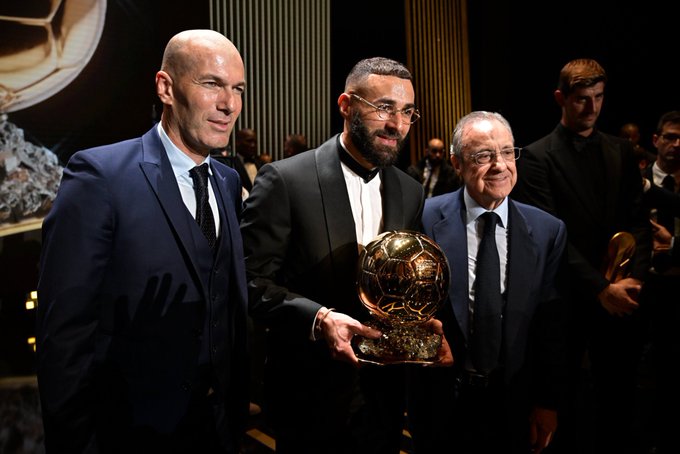 وهذه هي المرة الأولى التي يتوج فيها بنزيما بجائزة الكرة الذهبية، منذ بدء مشواره مع الساحرة المستديرة، وسلم له الجائزة الأسطورة الفرنسية ومدرب ريال مدريد السابق زين الدين زيدان.