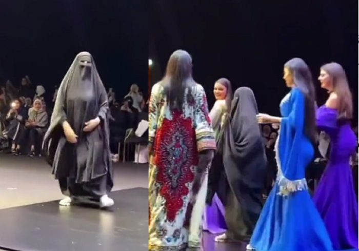 انتشر بين رواد مواقع التواصل الاجتماعي مقطع مصور، لعرض أزياء ظهرت فيه امرأة منتقبة بين العارضات بشكل مفاجئ، ما أثار حالة الجدل والاستغراب بين المتابعين.