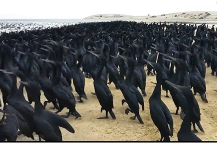 نشرت وزارة البيئة والتغير المناخي في قطر مقطع فيديو يظهر حشد ضخم من “طائر الغاق السقطري” تبدو وكأنها تتعدى على شواطئ خور العديد.