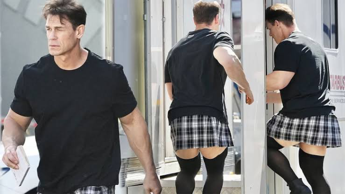 وخرج جون سينا، 45 عامًا ، يوم الخميس الماضي مرتديًا جوارب نسائية تصل إلى الفخذ وتنورة صغيرة منقوشة ، وأظهر ساقيه العضليتين بشكل لا يصدق.