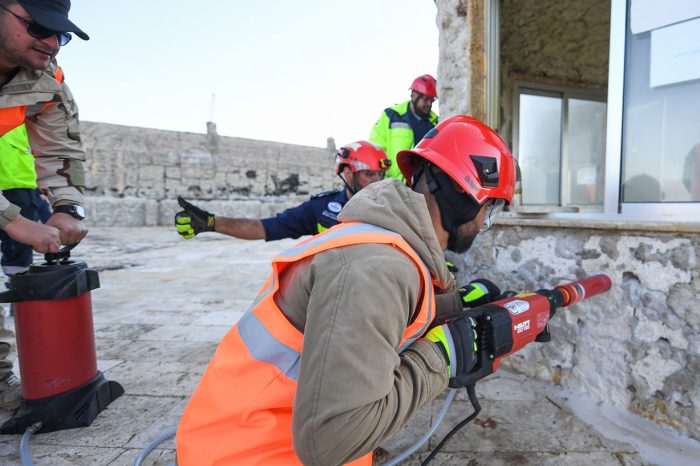 يواصل فريق البحث والإنقاذ الإماراتي إجراء تمارين عملية في مقره الرئيسي في مدينة جبلة بمحافظة اللاذقية ، سوريا ، لتأهيل عناصر الدفاع المدني السوري للتعامل مع حالات الطوارئ بشكل احترافي.