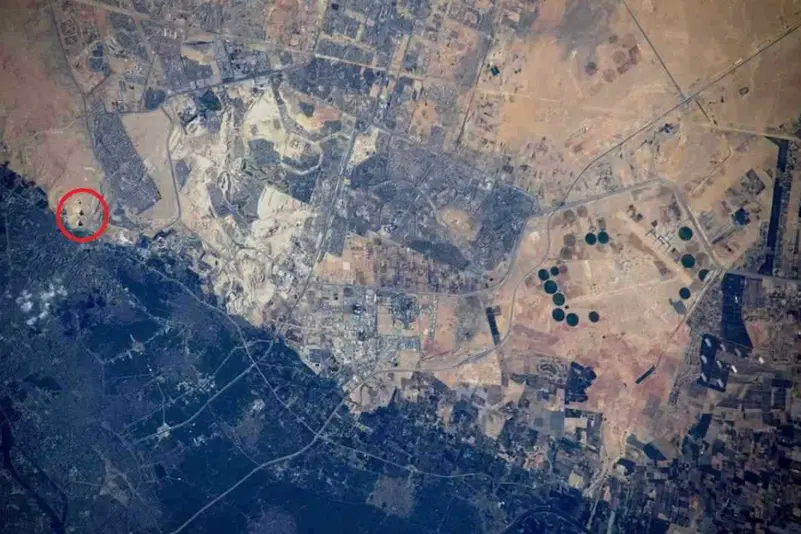 كم شاركت ناسا اجابة التحدي مع القراء عبر تعليق ألمحت فيه لمكان الاهرامات بالقول: “إنها (الأهرامات) تظهر على شكل ثلاث مربعات مظللة جزئيًا بالقرب من الحافة اليسرى للصورة حيث يتقاطع التطور العمراني مع المناظر الطبيعية الصحراوية”.