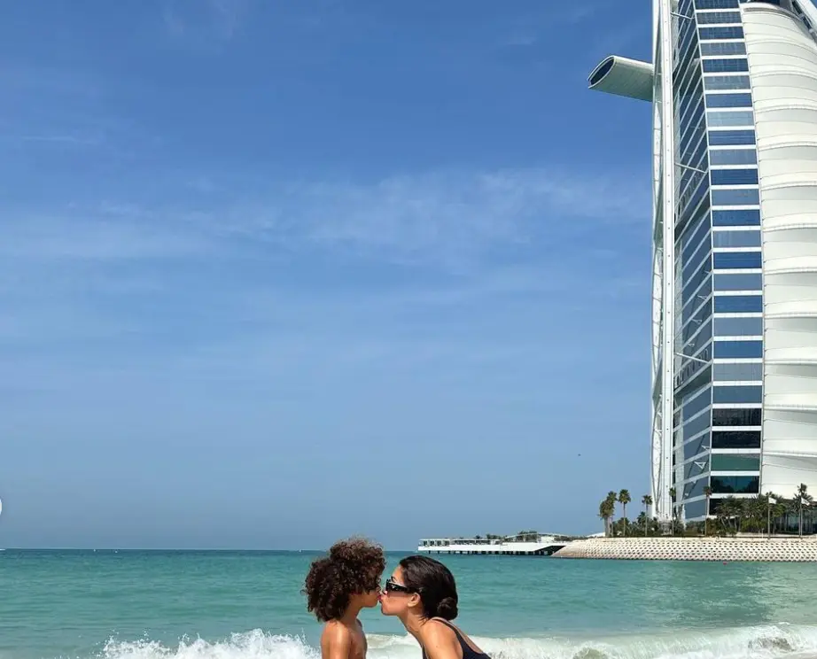 كما بدا “برج العرب” واحد من أهم معالم إمارة دبي، من ورائها، في حين كانت تتلذذ بوقتها.