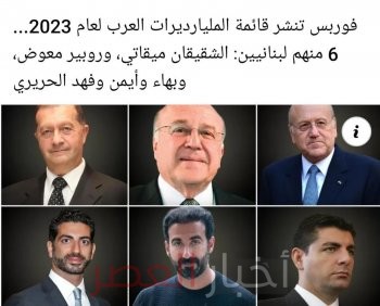 نشرت الممثلة اللبنانية الشهيرة كارمن لبس على صفحتها الرسمية على موقع التواصل الاجتماعي صورة تظهر فيها 6 شخصيات لبنانية مصنفة ضمن قائمة فوربس للمليارديرات العرب في عام 2023.