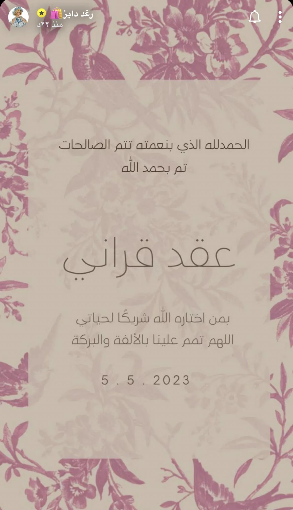 أعلنت مشهورة سناب شات اليمنية رغد دايز عن عقد قرانها يوم الجمعة الخامس من شهر مايو 2023.