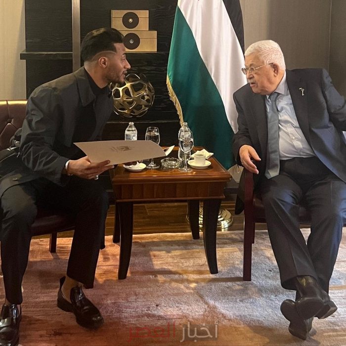 صور لقاء محمد رمضان مع الرئيسي الفلسطيني محمود عباس تثير السخرية.. لماذا؟!
