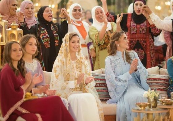 ماذا كتب على فستان رجوة آل سيف .. وكيف ظهرت مع الملكة رانيا في ليلة الحناء