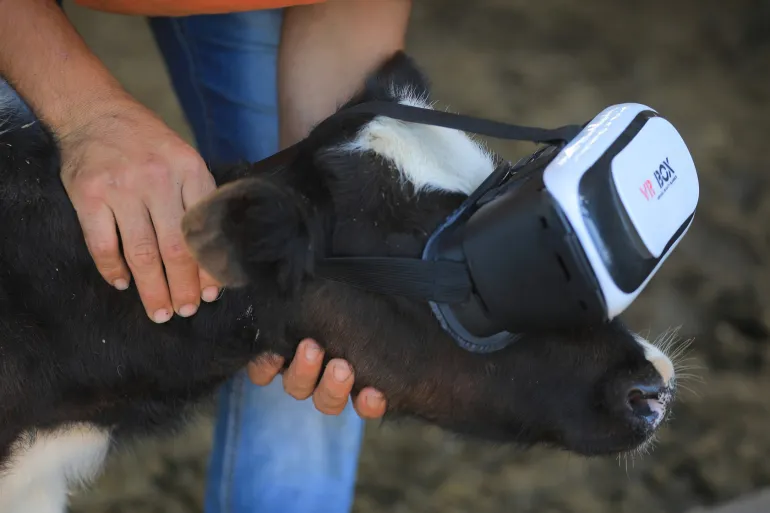 تم تصميم نظارات الواقع الافتراضي خصيصًا لتتناسب مع رؤوس الأبقار وتساعدها على الاسترخاء وزيادة إنتاج الحليب.