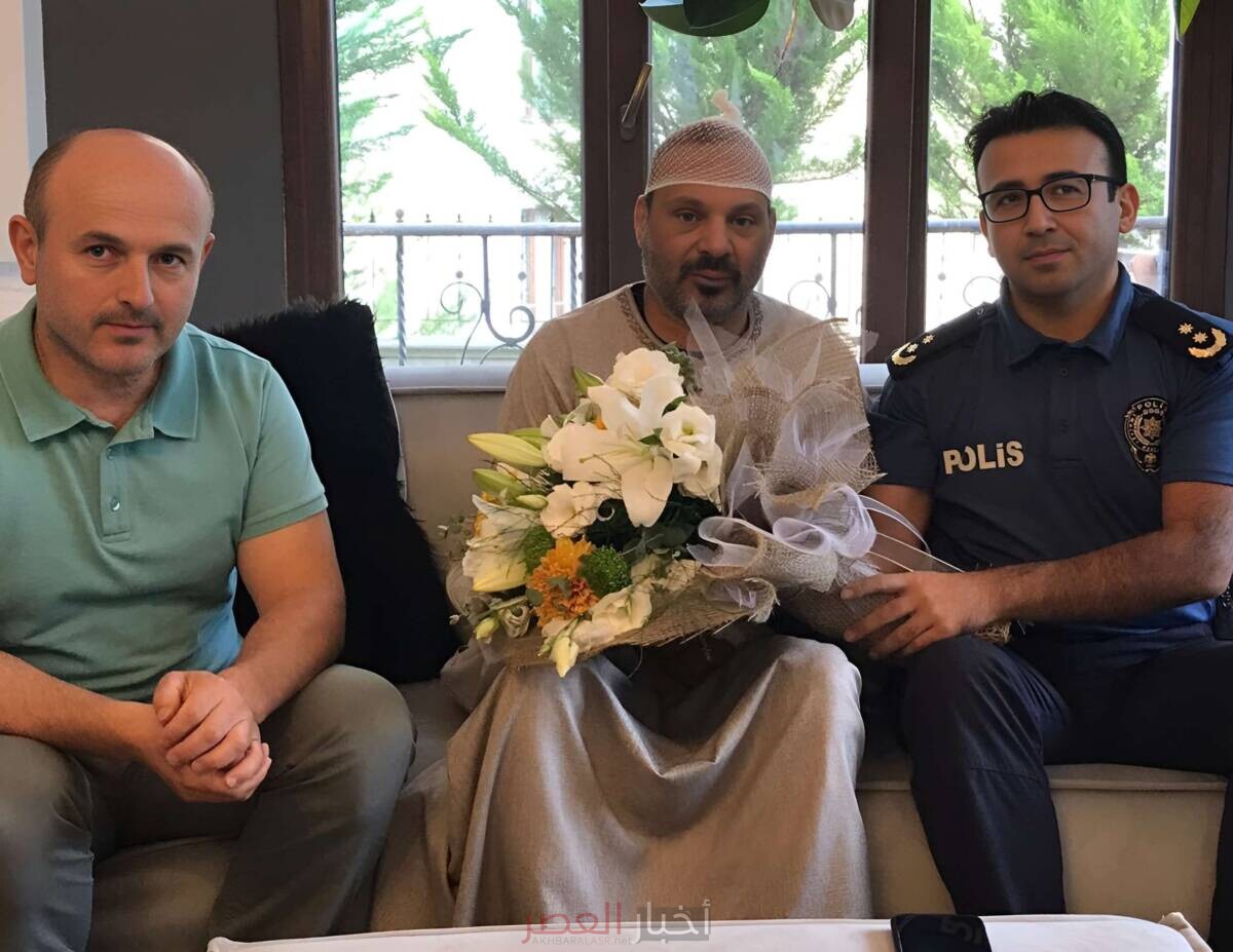وظهر السائح الكويتي وهو ببدو بحالة صحية جيدة يحمل الورد بجانبه عناصر من الأمن التركي.
