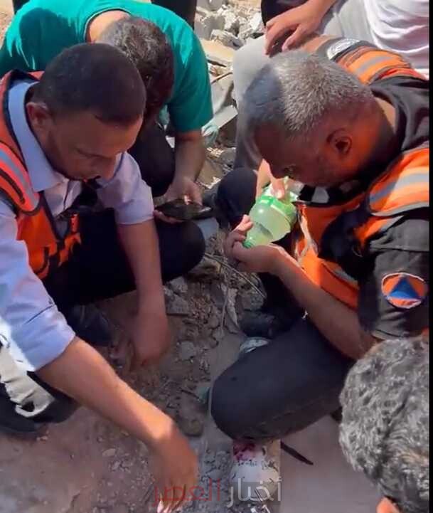 بالفيديو.. ايصال الماء لمن هم تحت الانقاض بواسطة الخراطيم