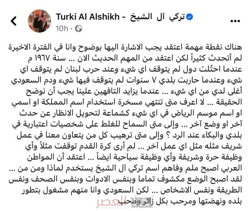 دم السعودي اغلى من اي شي.. تركي آل الشيخ يرد على منتقدي استمرار موسم الرياض