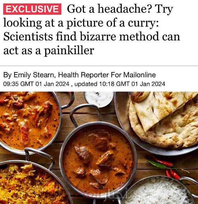 أظهرت دراسة صينية حديثة نُشرت في “مجلة علم النفس البيولوجي” أن النظر إلى الطعام الذي يحتوي على الفلفل والتوابل، مثل “دجاج الكاري” و”تيكا مسالا”، يمكن أن يقلل من الألم الناتج عن الصداع.