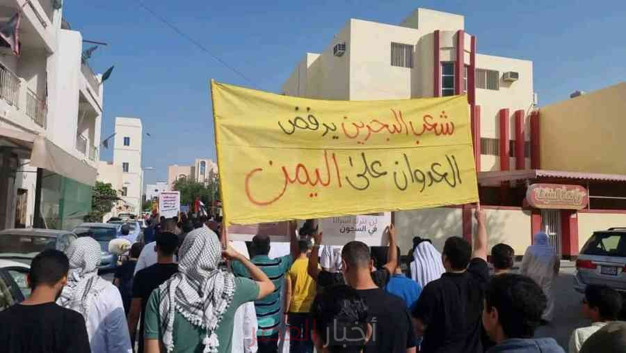 حيث تأتي هذه المظاهرات الشعبية في البحرين رداً على اعلان مشاركة الحكومة البحرينية في عمليات القصف الجوي التي قامت بها القوات الامريكية والبريطانية في اليمن.