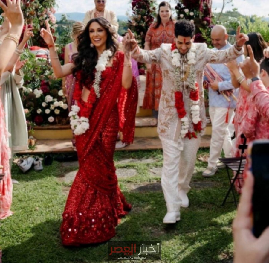 بدأت الاحتفالات بعشاء ترحيبي تقليدي في حديقة مفتوحة، حيث تألقت العروس بساري أحمر مطرز خصيصًا، نسقته مع حذاء فضي ومجوهرات ماسية لافتة، وقد شارك العريس صورًا من الحفل عبر حسابه، معلقًا: “حفل زفاف أحلامنا، على الطريقة الهندية”.