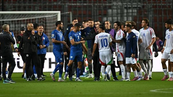 شهدت مباراة إيطاليا والكيان المحتل في تصفيات كأس العالم 2026، التي أقيمت في المجر، أحداثًا مؤسفة وفوضى عارمة عقب انتهاء اللقاء.