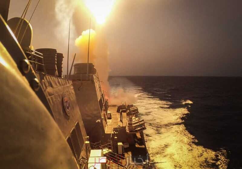 بالصور.. لحظة اطلاق الحوثيين واستهداف بارجة امريكية في البحر الاحمر