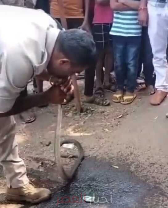 بالفيديو.. ضابط شرطة ينعش الثعبان عن طريق الفم والنتيجة غير متوقعة