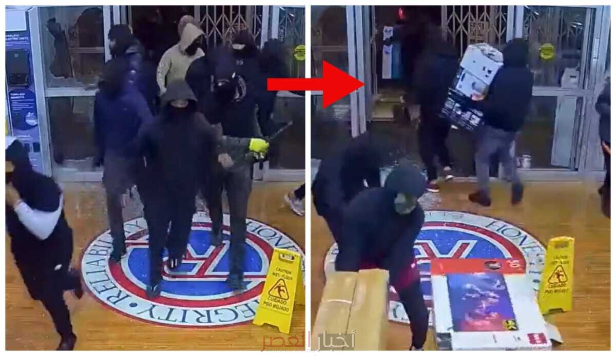 بالفيديو.. عشرات اللصوص دفعة واحدة يقتحمون متجر للالكترونيات